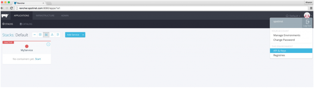 1. Spot expects an Environment API Key (and not an Account API Key). Perform the following steps to create it.